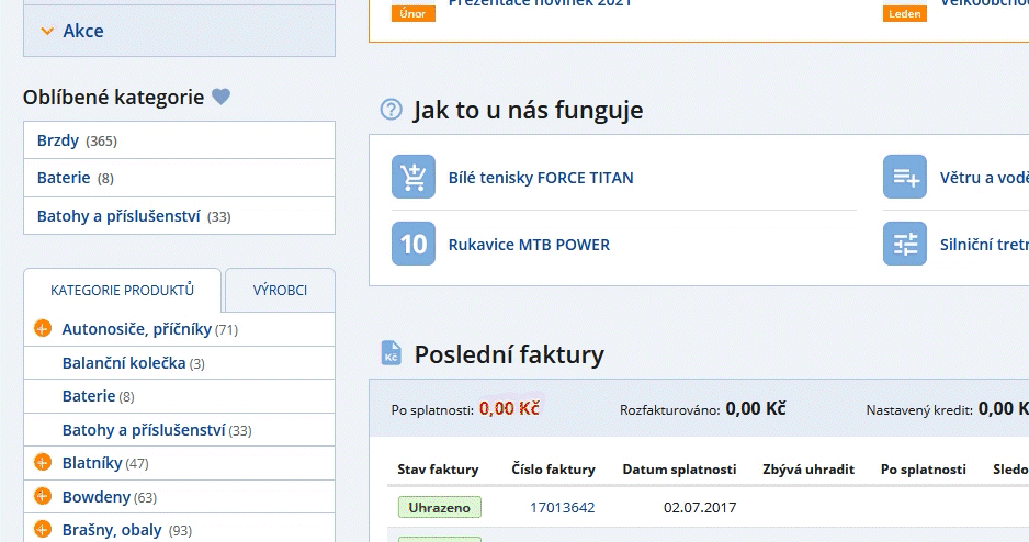 Oblíbili jste si u nás některé kategorie produktů a chcete k nim mít snadný a rychlý přístup? Přesně z tohoto důvodu jsme zavedli Oblíbené kategorie. Pomocí ikonky srdíčka můžete snadno označit danou kategorii jako oblíbenou a uvidíte jí tak na hlavní stránce vašeho B2B.